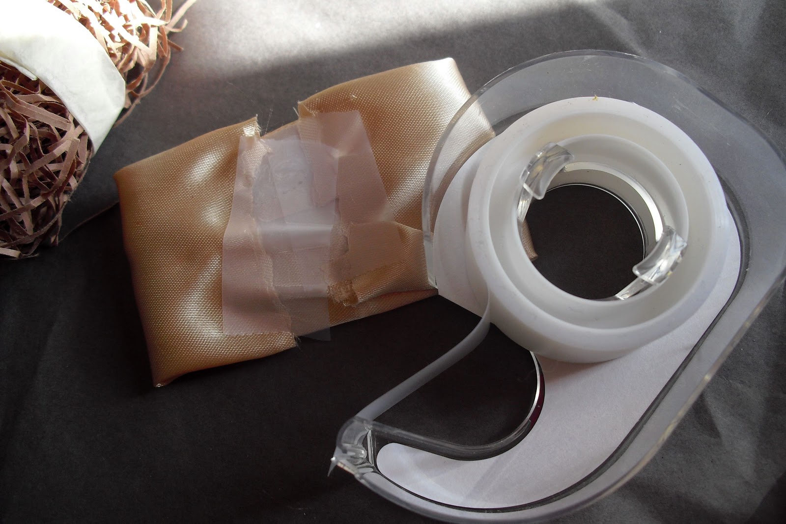 I flipped the taped fabric over, pinched the center to create a bow and wrapped a thin piece of tape around the center to hold its shape.