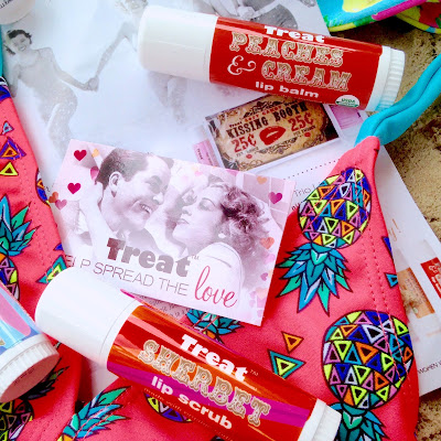 Hayden and I made a girls day out of it. We've been hanging out in our pineapple bikinis (mine is from Pineapple Bikini and hers is from Target) and treating ourselves to these fabulously fun lip products. Just look at all of those tasty Treat flavors in large containers that remind me of old-school Bonnie Bell (but better for you).